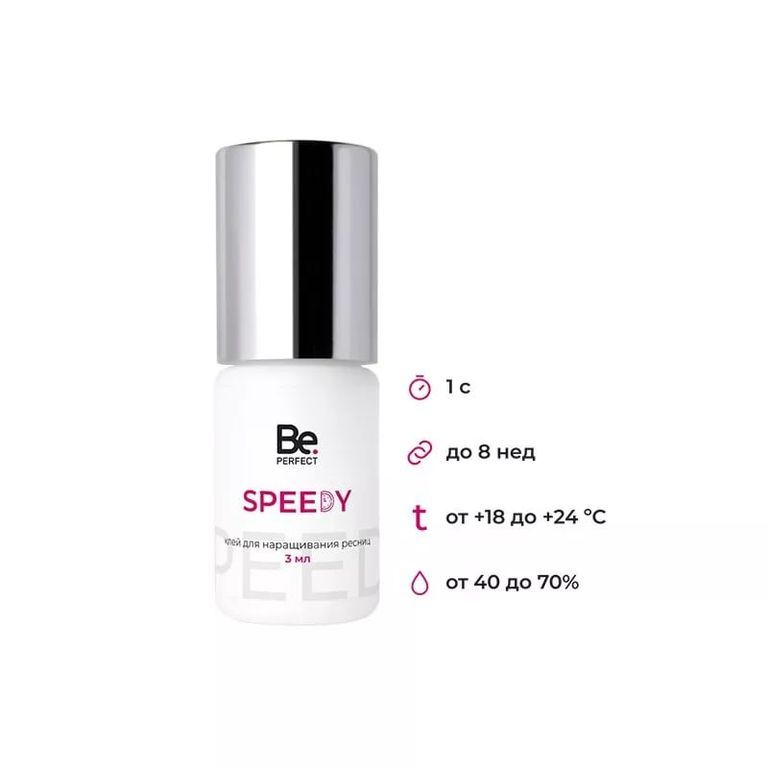 Клей Be Perfect для наращивания ресниц Speedy применяется для приклеивания искусственной ресницы к натуральной профессиональными лэшмейкерами. Уникальный состав позволяет сделать сцепку практически моментальной, а количество испарений сведено к минимуму, что снижает риск проявления аллергической реакции.