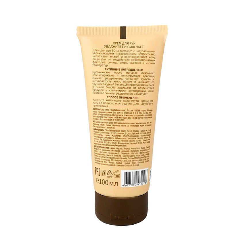 Органическое масло миндаля увлажняет и смягчает кожу, делая ее гладкой и нежной. Экстракт гинкго билоба замедляет процесс старения клеток кожи. Экстракт гамамелиса тонизирует кожу рук.