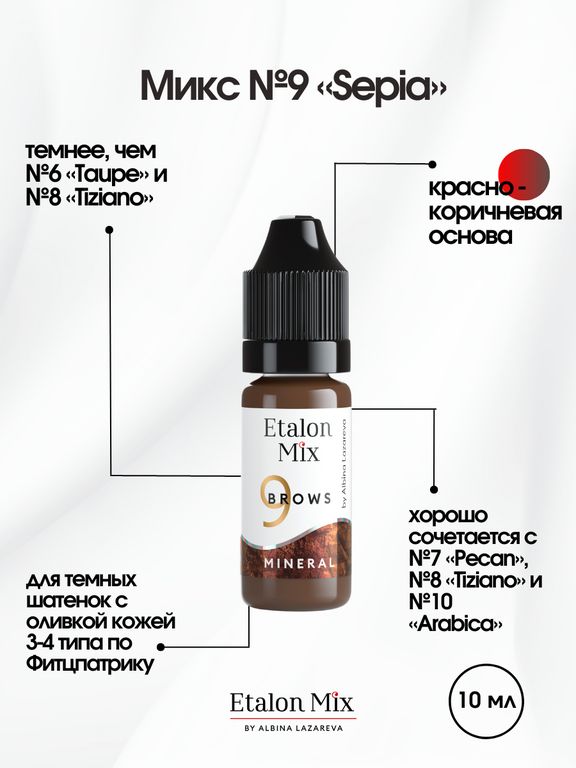 EtalonMix Пигмент для бровей №09 «Sepia» mineral series , 1/10мл