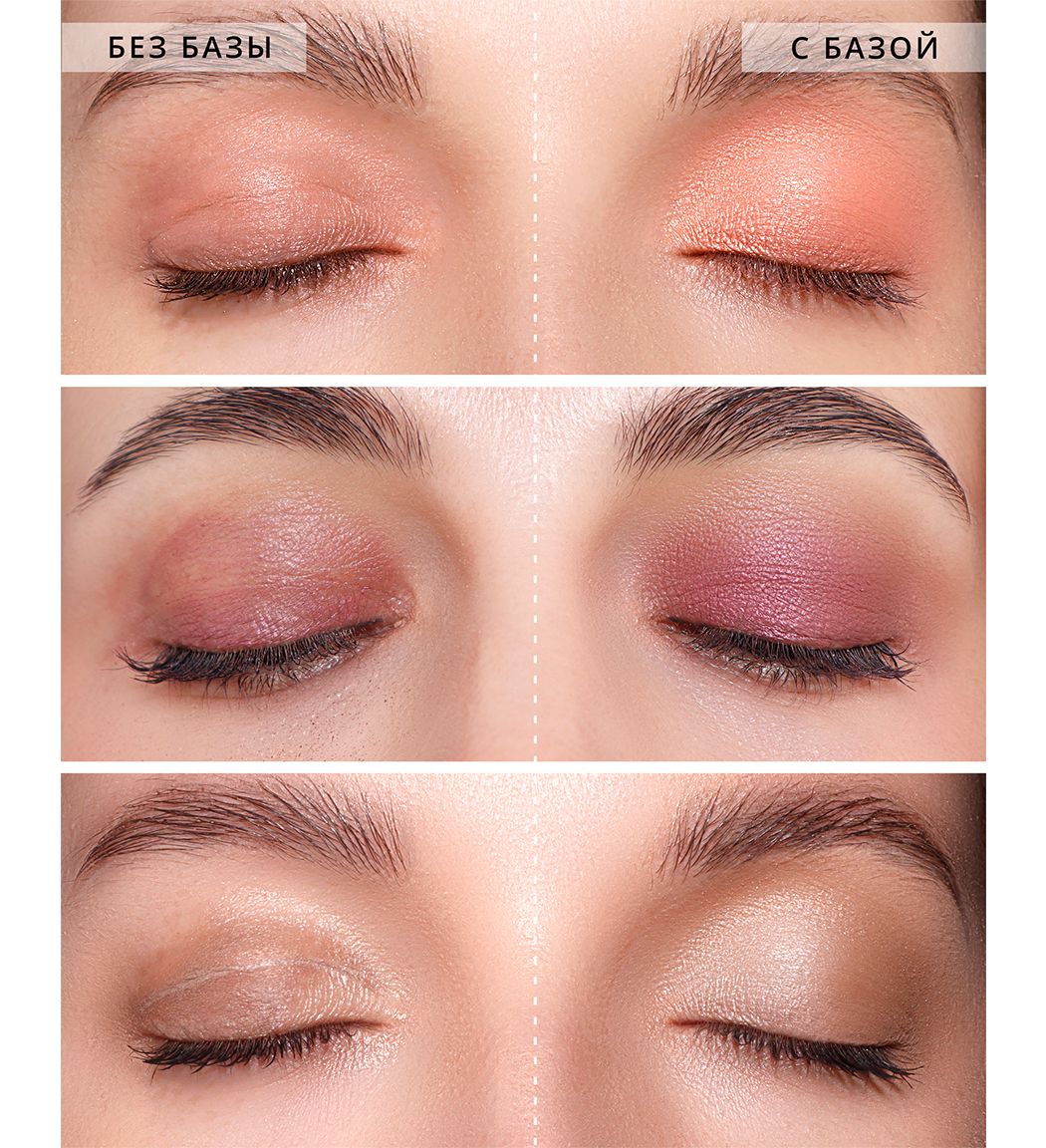 Натуральный бежевый оттенок базы тонирует и выравнивает кожу век, скрывает мелкие несовершенства.