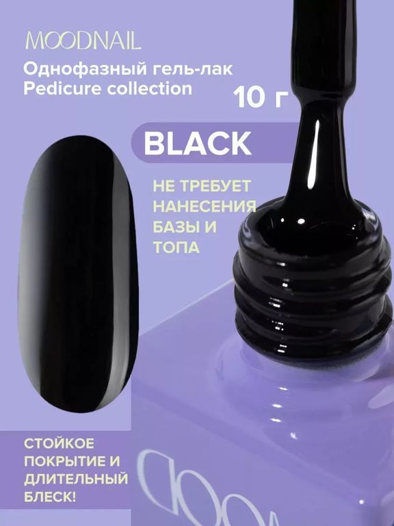 MOODNAIL One step Gel-polish Pedicure collection Black, 10г