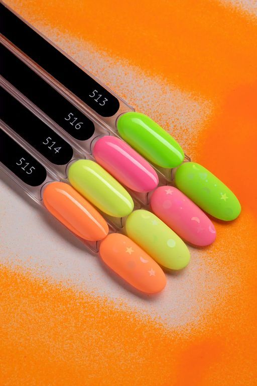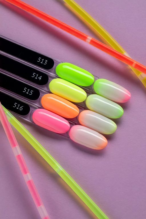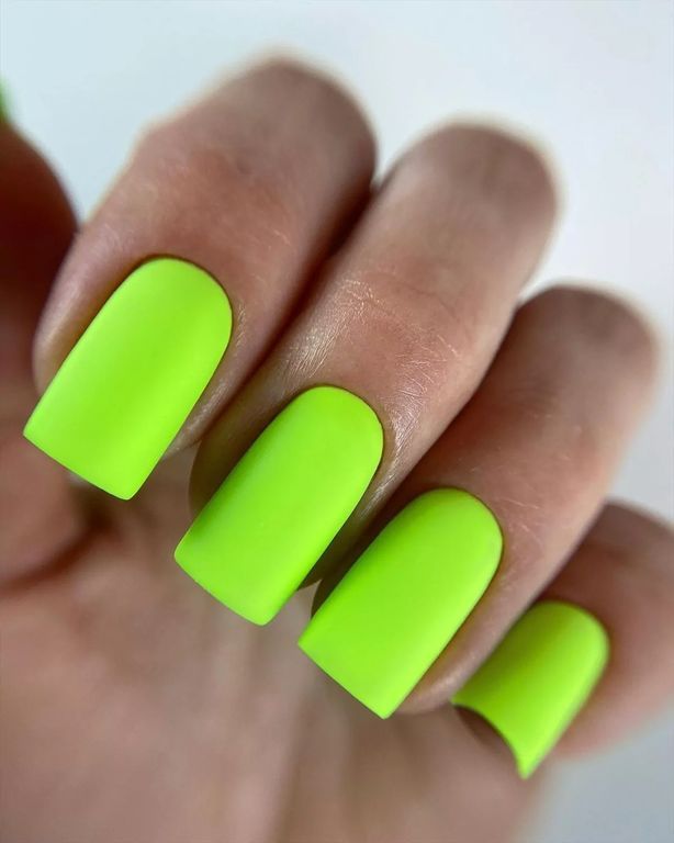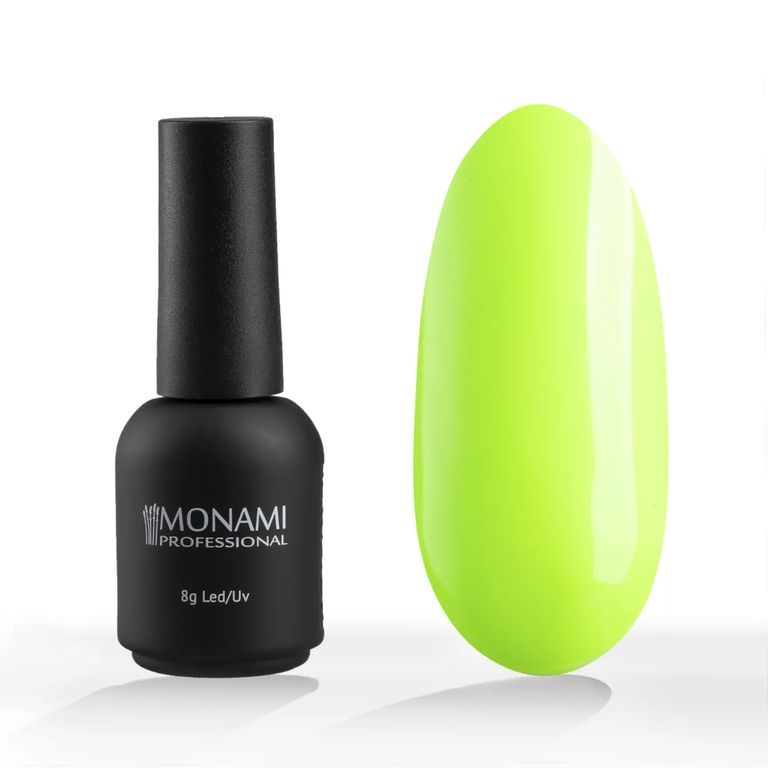 Гель-лак выбеленного неоново-салатового оттенка, без эффекта, плотный.