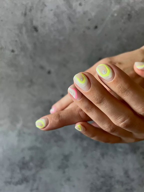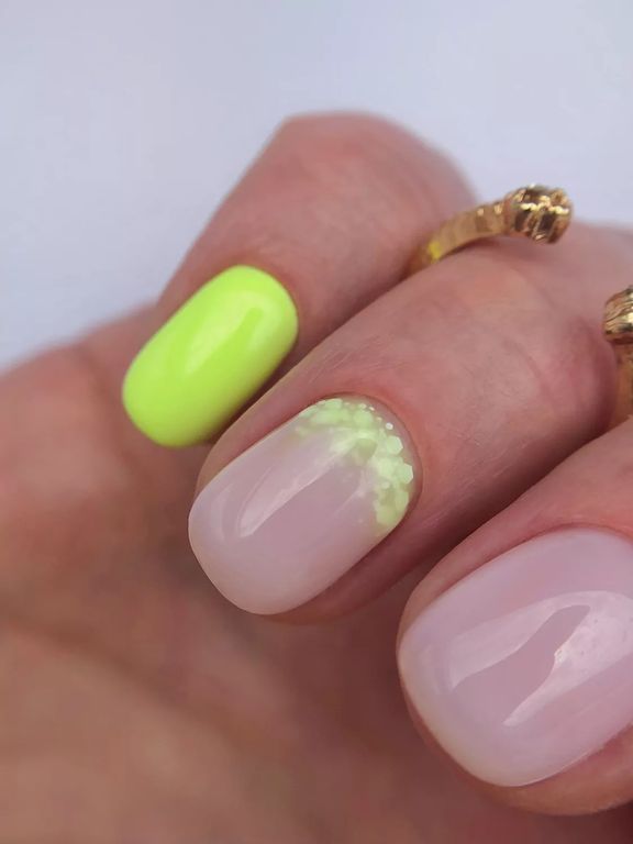 Гель-лак выбеленного неоново-желтого оттенка, без эффекта, плотный.
