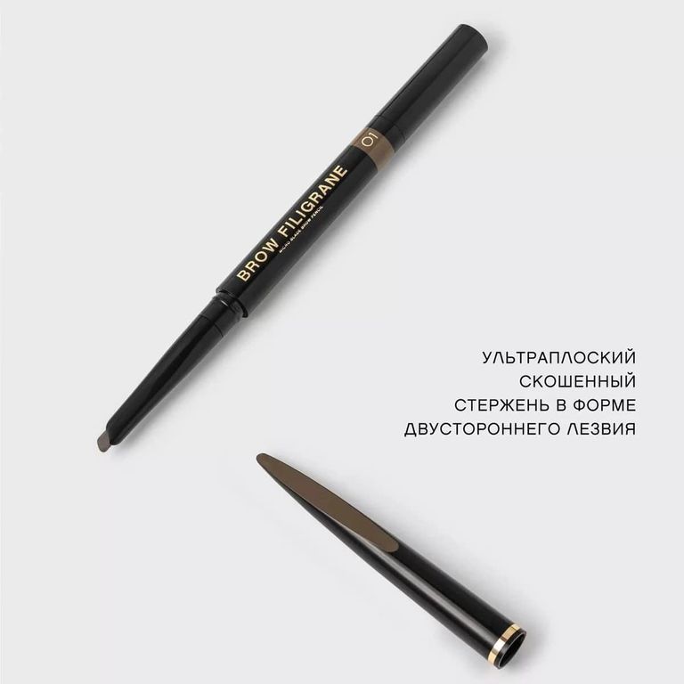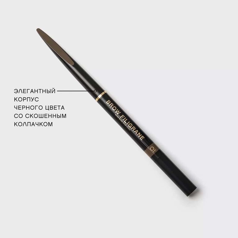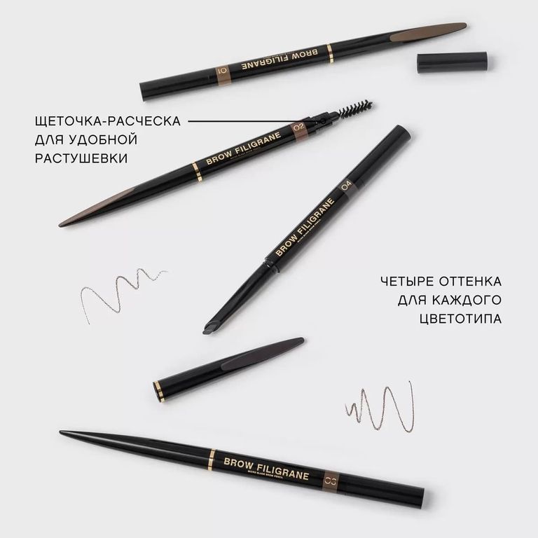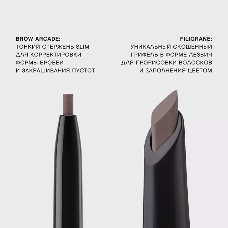 Карандаш BROW FILIGRANE в четырех оттенках для всех цветотипов позволяет филигранно прорисовывать каждый волосок, делает брови густыми, объемными и невероятно естественными.
