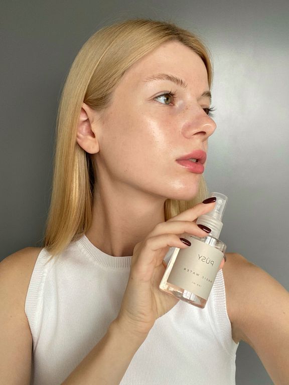 Волшебная вода от Pusy — уникальное средство, сочетающее простоту использования и безупречный результат. Позволяет добавить естественный эффект загара в течении 2 часов после нанесения. Выравнивает тон лица и снимает необходимость использовать тональные средства. Розовая вода придает коже матовость, устраняет сухость, шелушение, ощущение стянутости кожи, делая ее мягкой, гладкой, бархатистой.