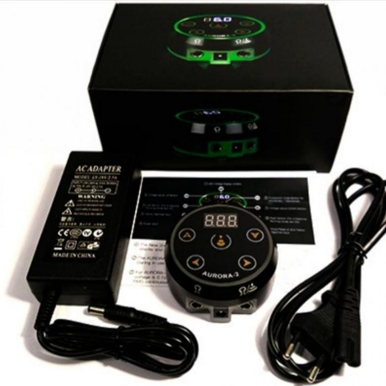 Aurora V-2 блок питания является последним достижением в технологии татуировки. Блок имеет уникальный индикатор напряжения, который меняет цвет в соответствии с настройкой, которая колеблется от 1.5В до 17В.