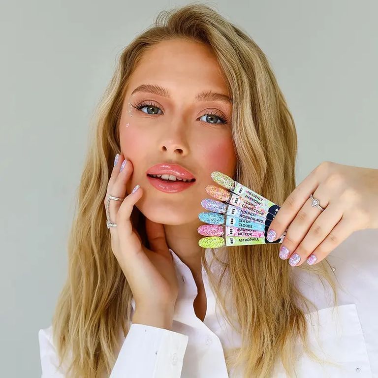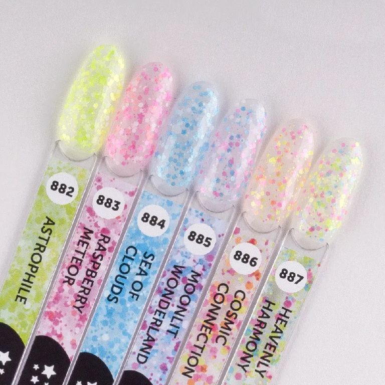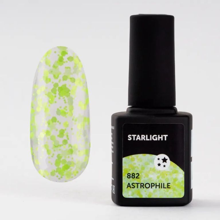 Превратить маникюр в завораживающее звездное небо? Мы знаем, как. Открой прозрачный гель-лак, наполненный миксом сочного лаймового глиттера в форме звезд и шестиугольников. А теперь начинай творить!