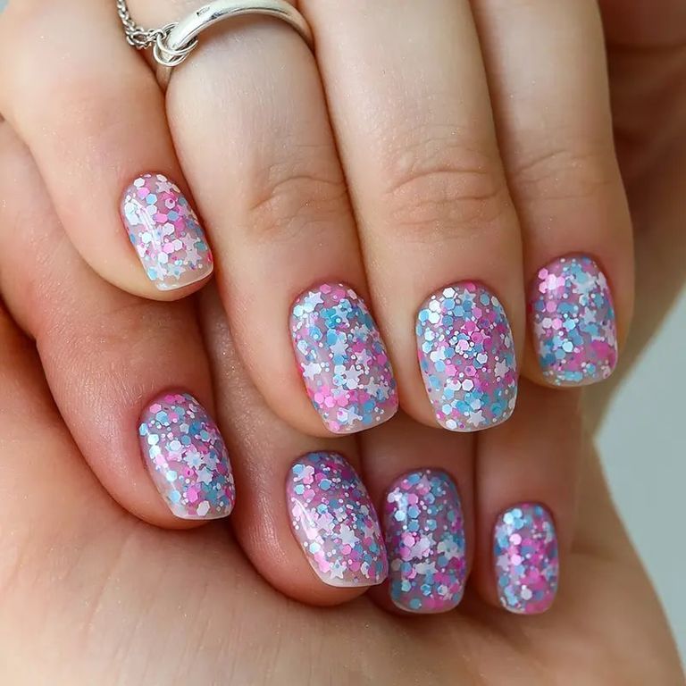 Пурпурный, голубой и белый глиттер в форме шестиугольников и звезд смешались в этом гель-лаке, чтобы подарить тебе лунную сказку. Каждый нейл-образ с этим оттенком будет по-настоящему волшебным!