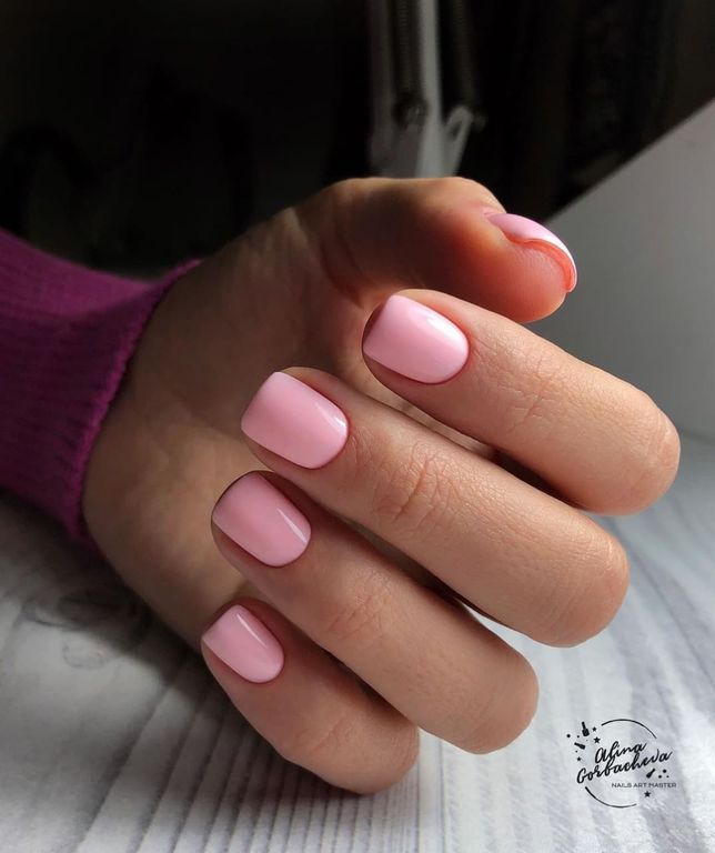 Гель-лак нежно-розовый, без эффекта, плотный.