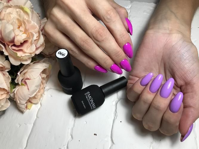Гель лак фиалковый, без эффекта, плотный.