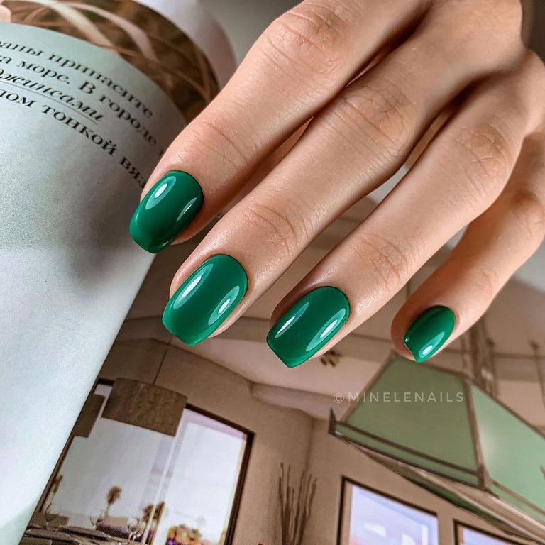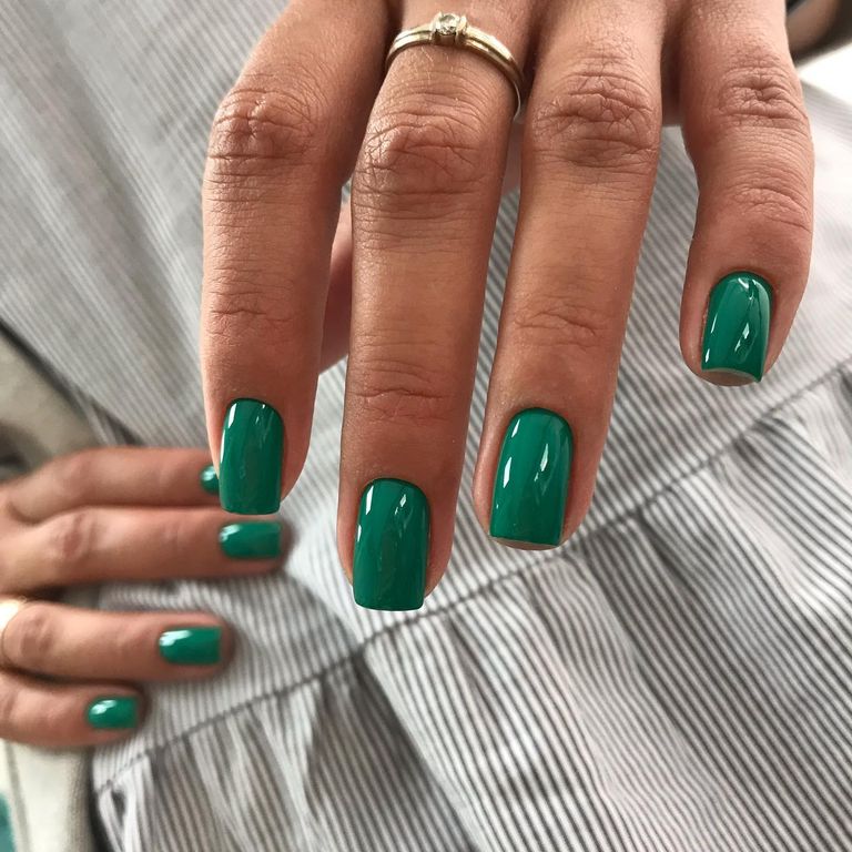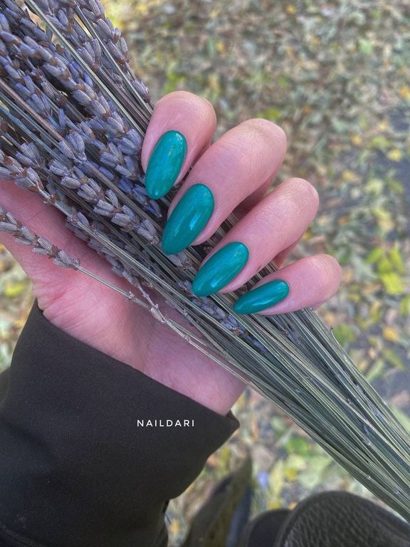 Гель-лак яркого нефритового оттенка, плотный.