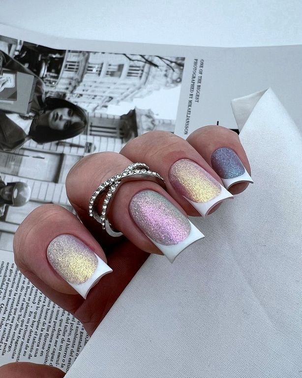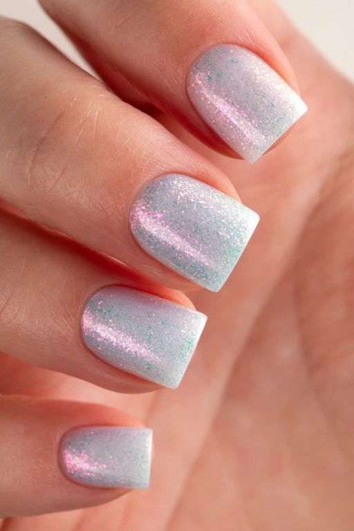 Гель-лак лилово-розовый с дуохромными частичками в составе.
