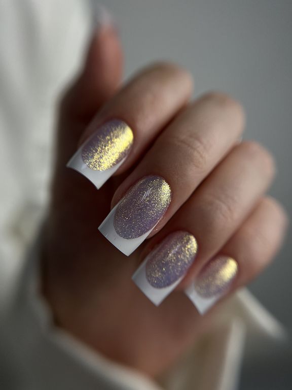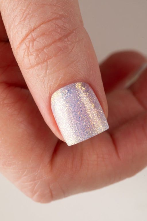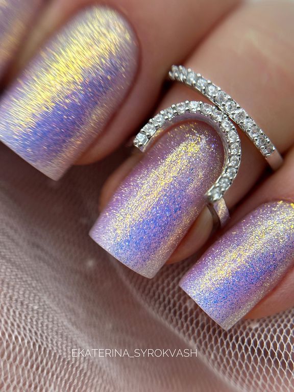 Гель-лак жёлто-лиловый с дуохромными частичками в составе.