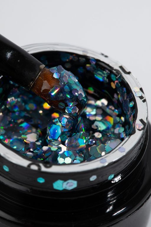 Яркие дизайны засияют по-новому! Добавляем в ассортимент гель-лаки с глиттером: в составе большое количество мелких разноцветных шестигранников, которые дадут активное сияние.