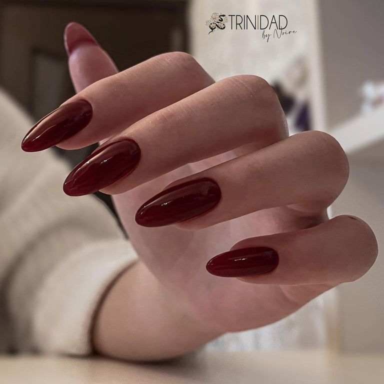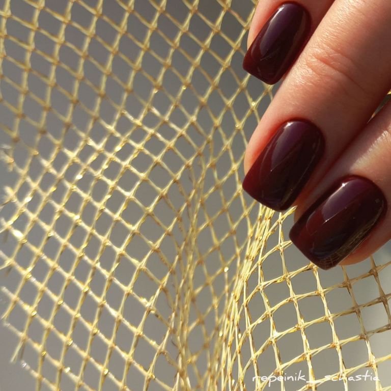 Гель-лак бордового оттенка словно спелая вишня, без эффекта, плотный.