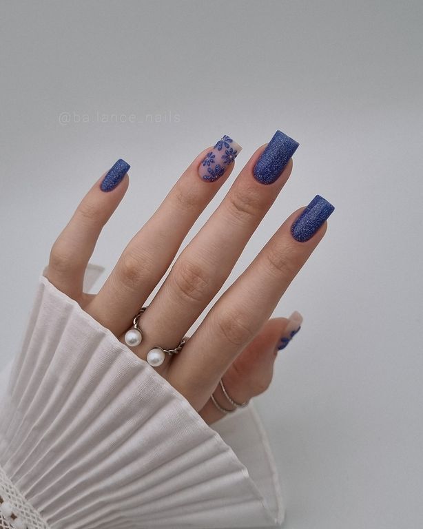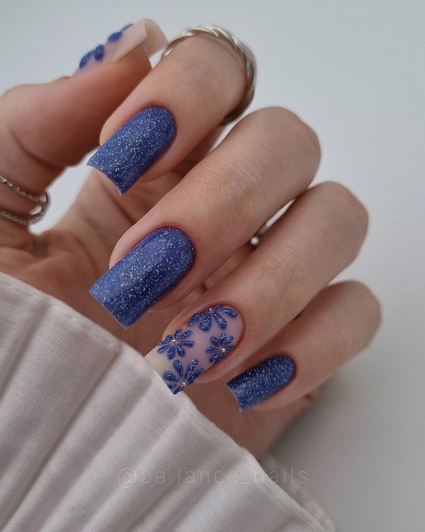 Гель-лак со светоотражающими частицами в синем оттенке.