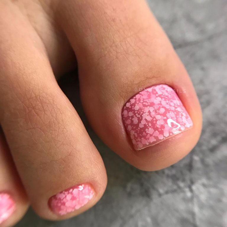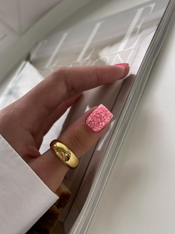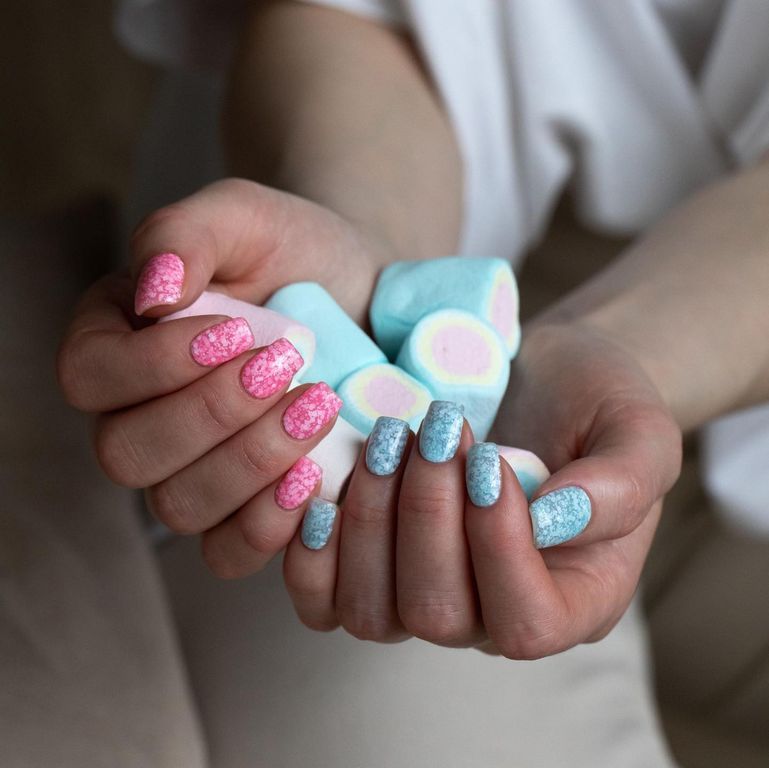 Гель-лак нежно-розового оттенка c утопленными белыми шестигранниками разных размеров.