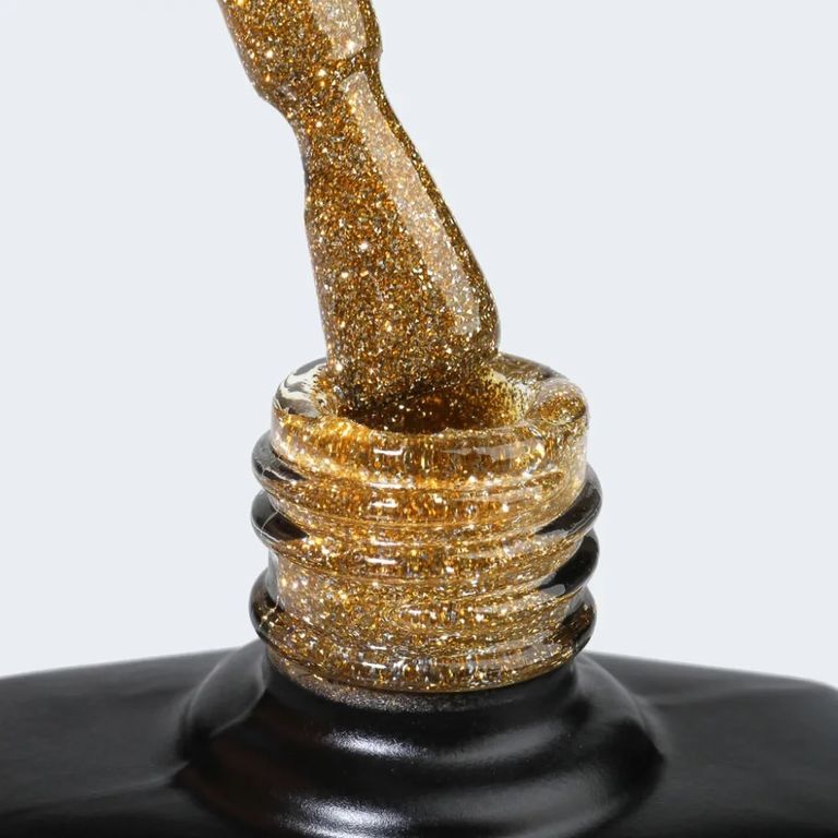 Настоящее жидкое золото на кончике кисти. Богатый солнечный желтый с яркими светоотражающими частицами. Это драгоценность для твоих ногтей.