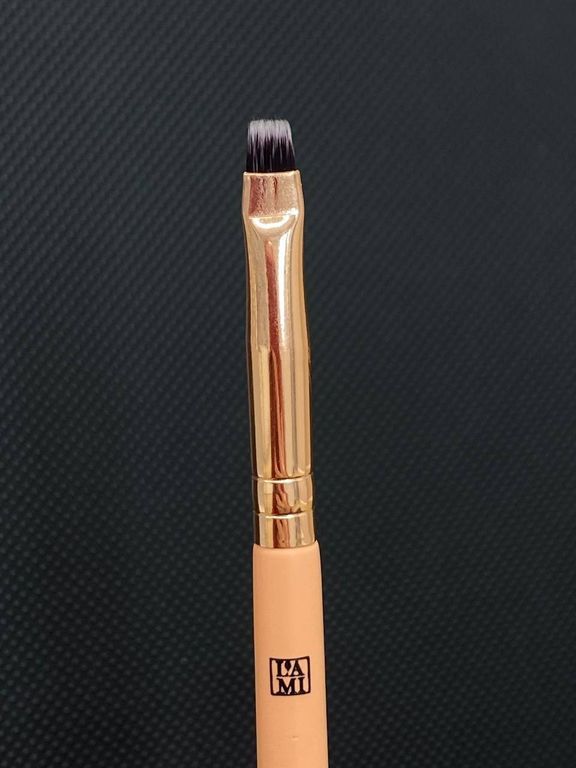 Маленькая прямая кисточка для окрашивания бровей хной, а также для идеального удаления препаратов во время процедуры ламинирования ресниц.
