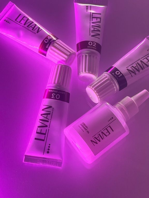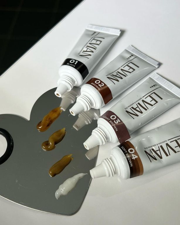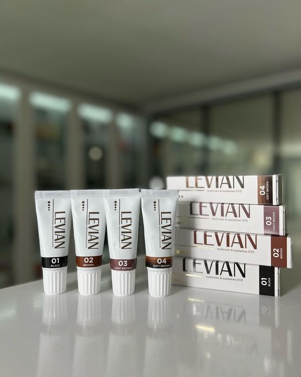 LEVIAN — стойкая краска, с помощью которой можно придать бровям и ресницам насыщенный и глубокий цвет на месяц и больше. Окрашивает не только волоски, но и кожу.