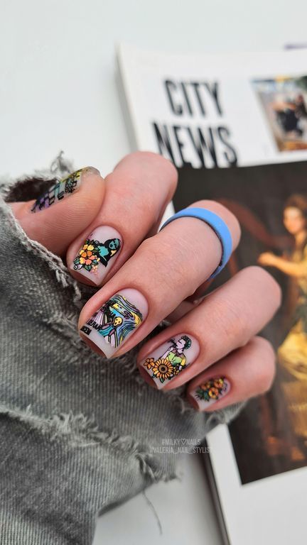 - Выбираем лак и наносим его на выбранный рисунок при помощи кисточки;