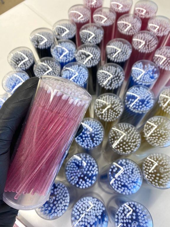 Микробраши – это удобные инструменты одноразового типа, которые необходимы для комфортного выполнения большинства процедур с ресницами. Обладают тонкой рабочей частью, изготовленной из мягкого материала, и длинной ручкой. Ими очень комфортно наносит обезжириватель, клей, ремувер, составы для биозавивки и ламинирования. Каждый мастер который ценит свое время и деньги должен иметь в своем арсенале качественные, и при этом экономичные инструменты. Надежным помощником для Вас непременно станут удобные и практичные микробраши.