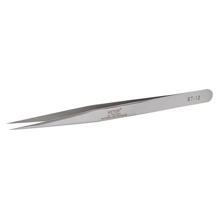 Прямой пинцет от Vetus из легкосплавной стали, инструмент удобно лежит в руке и легко сжимается, не позволяя кисти мастера устать даже при долгой процедуре. Пинцет имеет острые и плотно смыкающиеся кончики,благодаря которым можно без труда выделить самую тонкую натуральную ресницу и избежать повреждения или залома искусственной.