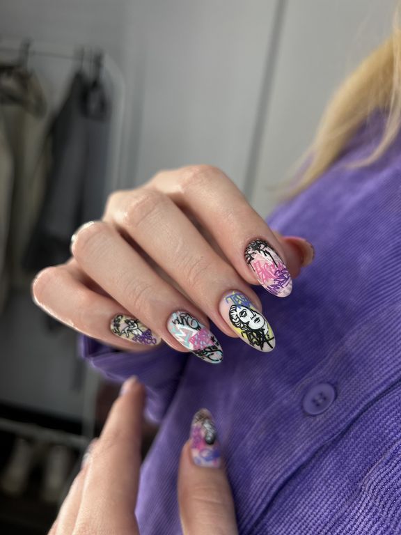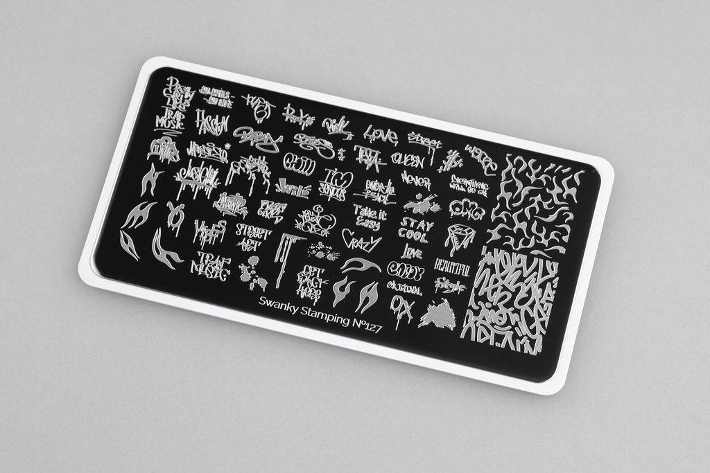 Уже полюбившиеся многим мастерам дизайны в стиле street art и изображениями с подтеками, тегами и граффити украсили пластину №127, разработанную по задумке стильной и талантливой @ver.nails.