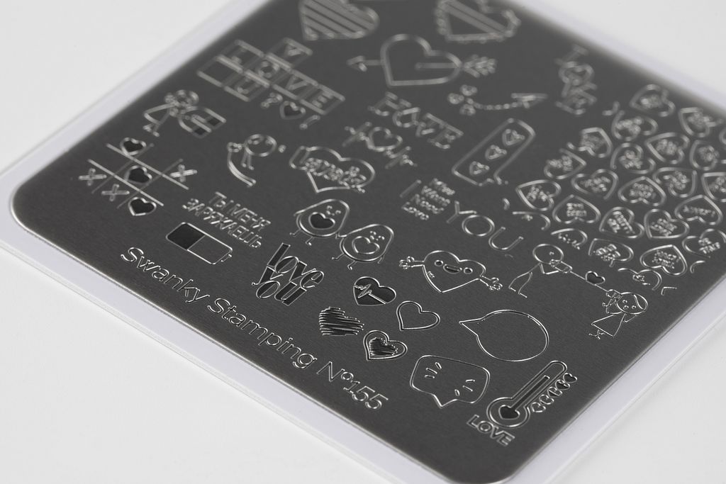 Маленькая пластина с большим выбором изображений на тему любви. Милая и нежная, тут вы сможете найти разные сердечки, любовные надписи, милых парочек. С пластиной 155 можно воплотить самые разные дизайны от романтичных и нежных, до стильных и трендовых!