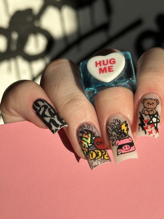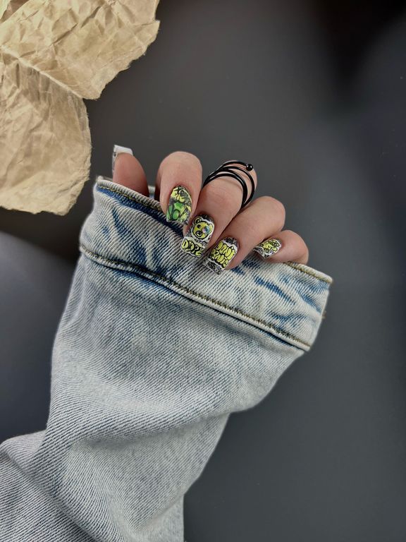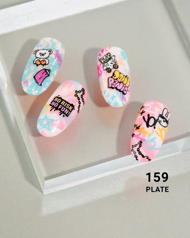 Дерзкая, неформальная пластина, подойдет для смелых, не боящихся заявить о себе девушек. Трендовые и смелые арты, которые прекрасно сочетаются между собой.