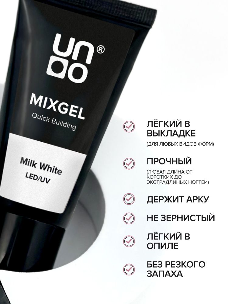 Полиакриловый гель UNO MIXGEL Milk White, камуфлирующий, 30г