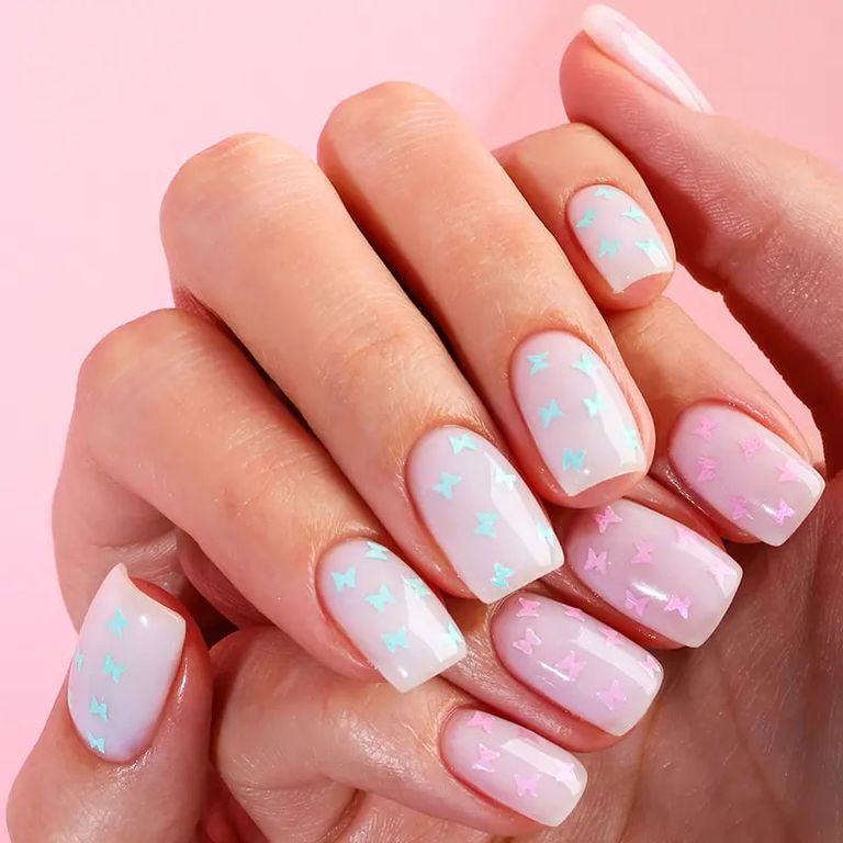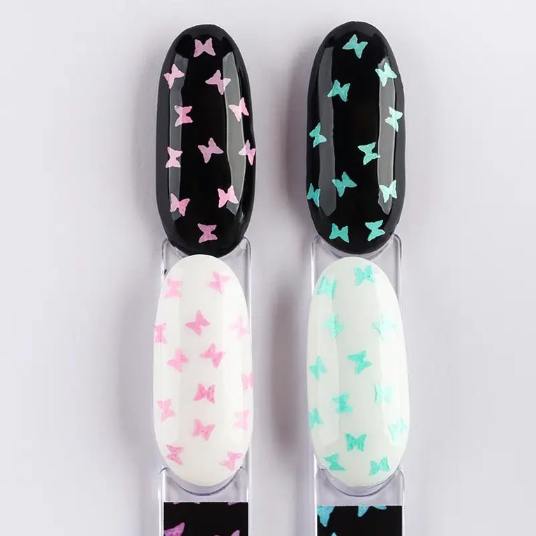 • Содержит розовый глиттер в форме бабочек. Идеален для стильных экспресс-дизайнов.