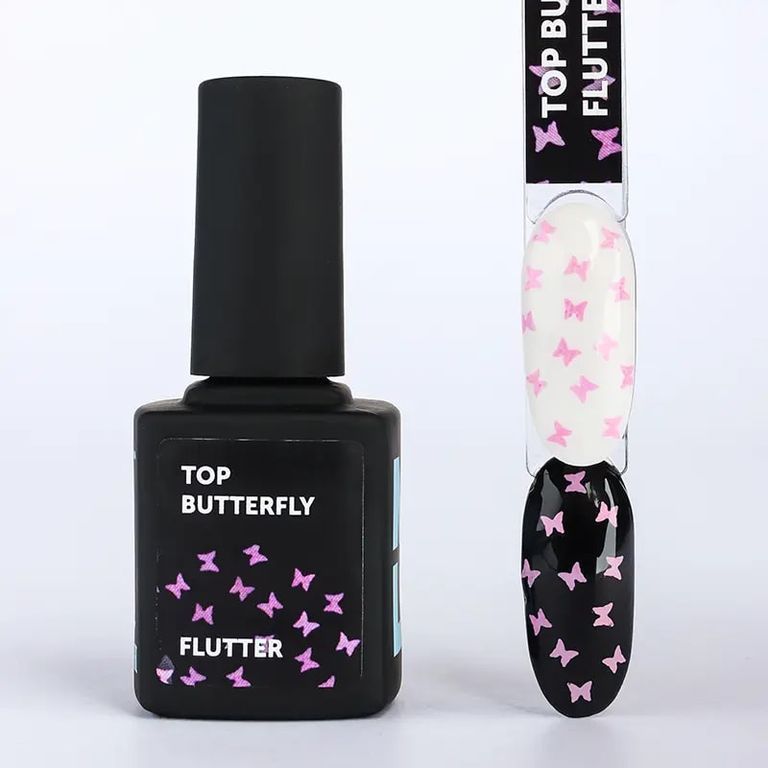 Пора расправить крылья! Создай самый нежный образ с арт-топом, наполненным глиттером в форме розовых бабочек. Это настоящее нейл-волшебство!
