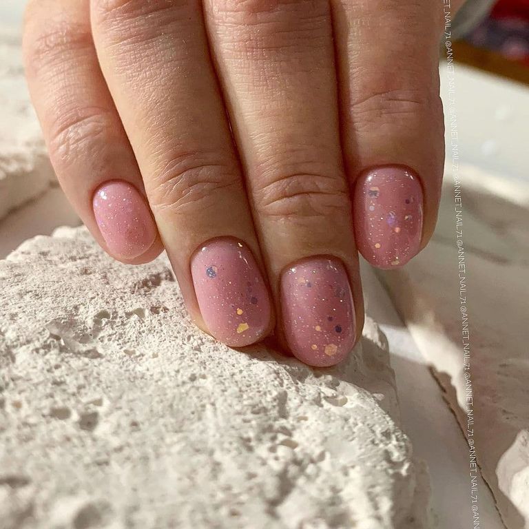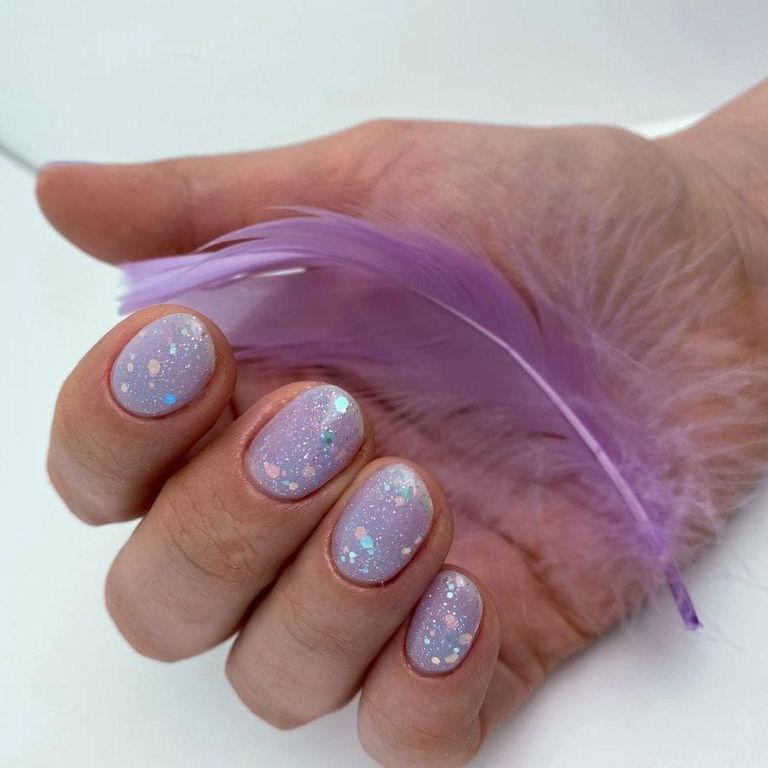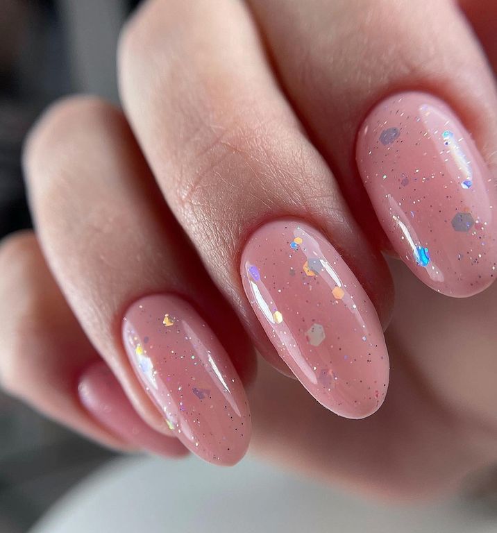 Прозрачный топ с блестками мелкого и крупного размера, без липкого слоя.