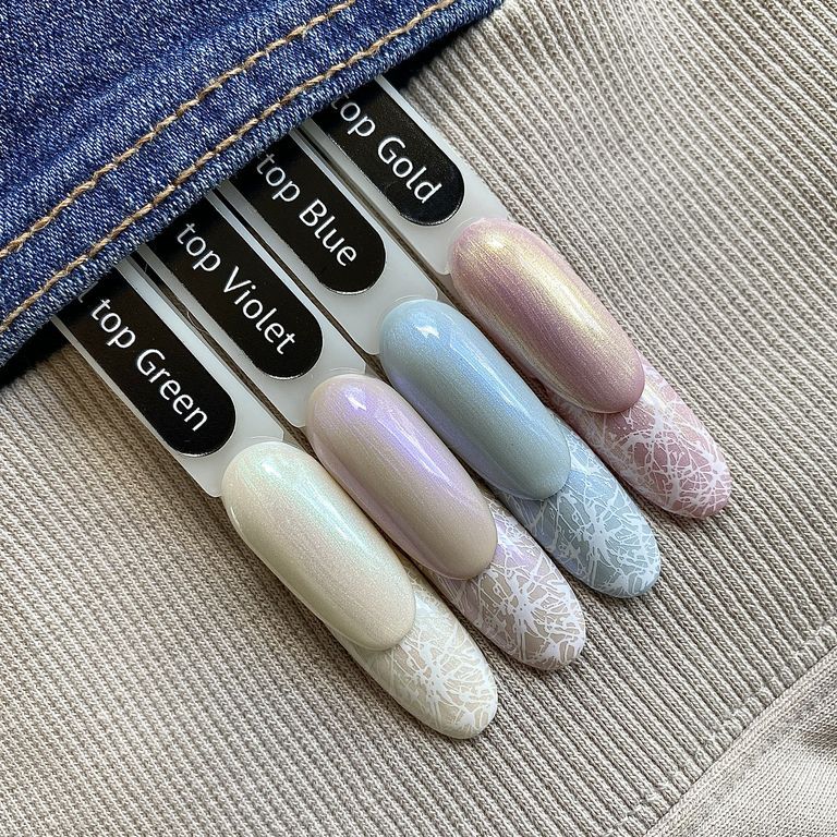 Топ без липкого слоя Super Shine Pearl Top Green, средне-жидкой консистенции с эффектом жемчужного маникюра.