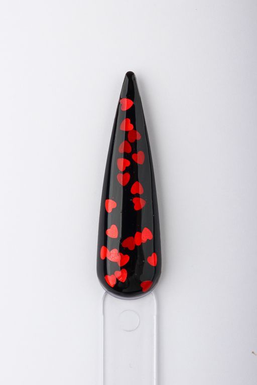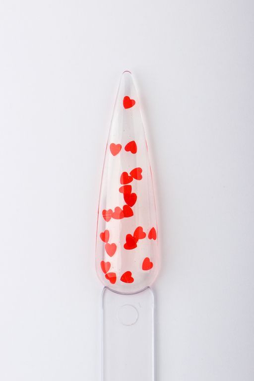 Знакомься: твой новый нейл-краш! Этот топ, наполненный красным глиттером в форме сердечек, любой однотон за секунды превратит в крутейший дизайн.