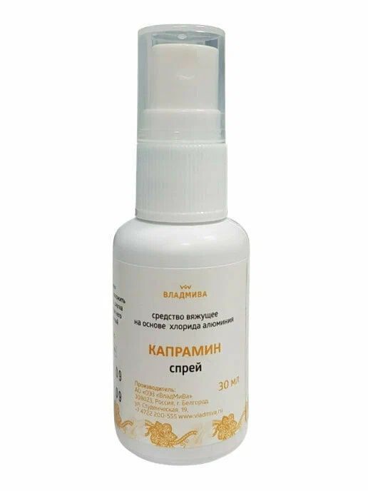 Капрамин спрей гемостатическая жидкость на основе хлорида алюминия 30мл Производитель: АО "ОЭЗ "ВладМиВа" Страна: Россия